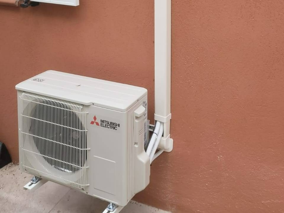 Notre client avait un système de climatisation en mono-split de marque MITSUBISHI Electric pour son bureau. Le groupe extérieur se trouve devant la vitrine, ce qui n'est pas très esthétique pour la clientèle passante.